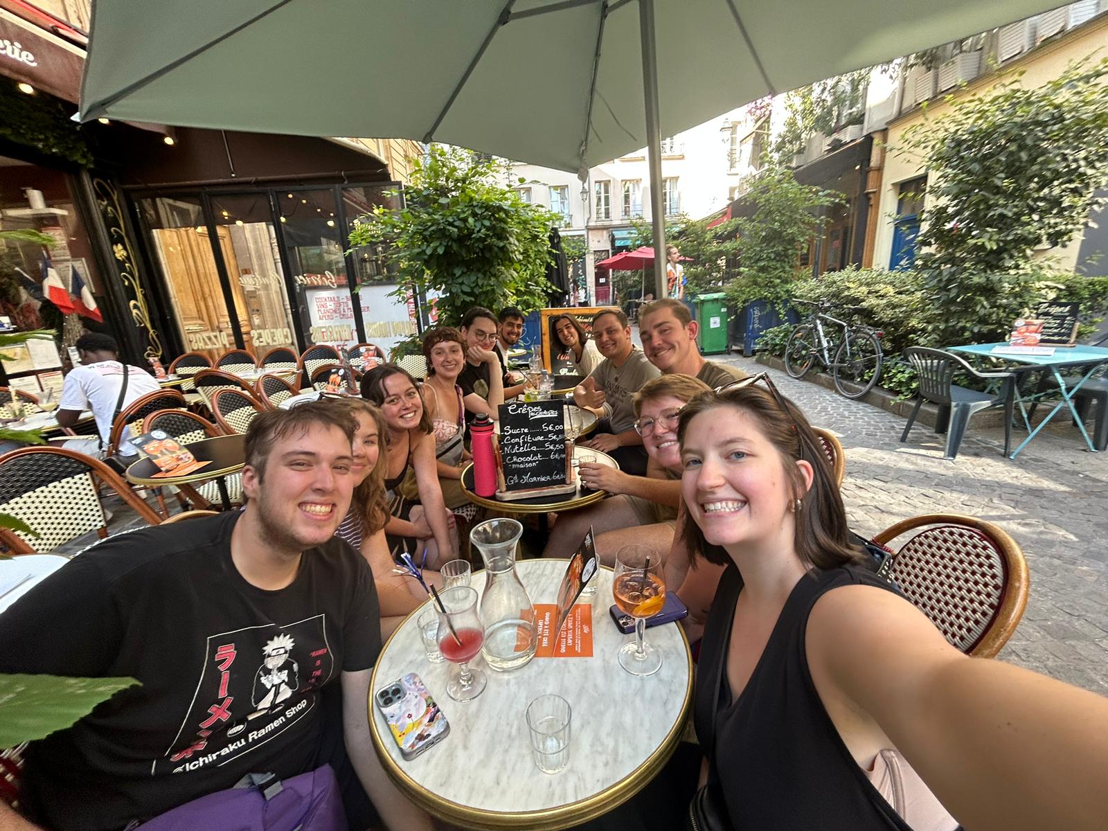 Troyes 2024 left to right: Andy Chaffin, Emma Sampson-Green, Samantha Vaccarella, Betty Wolfe, Ayden Huckelbury, Dr. Sasha Pfau, Miguel Velazquez, Bethany Sanders, Lathan Smalley, Campbell Christensen