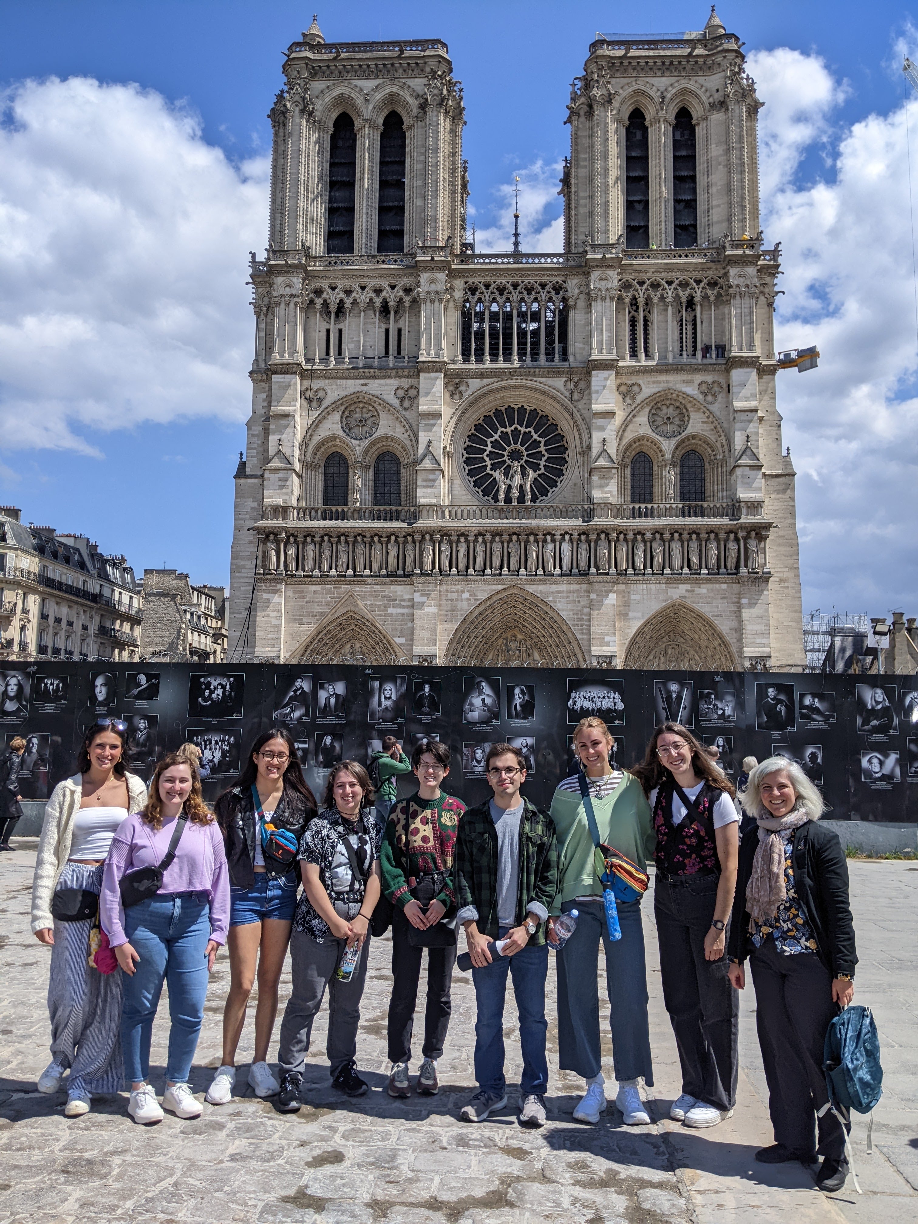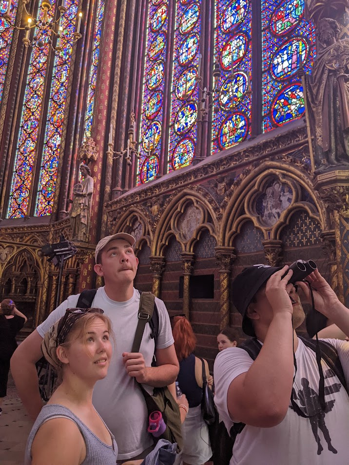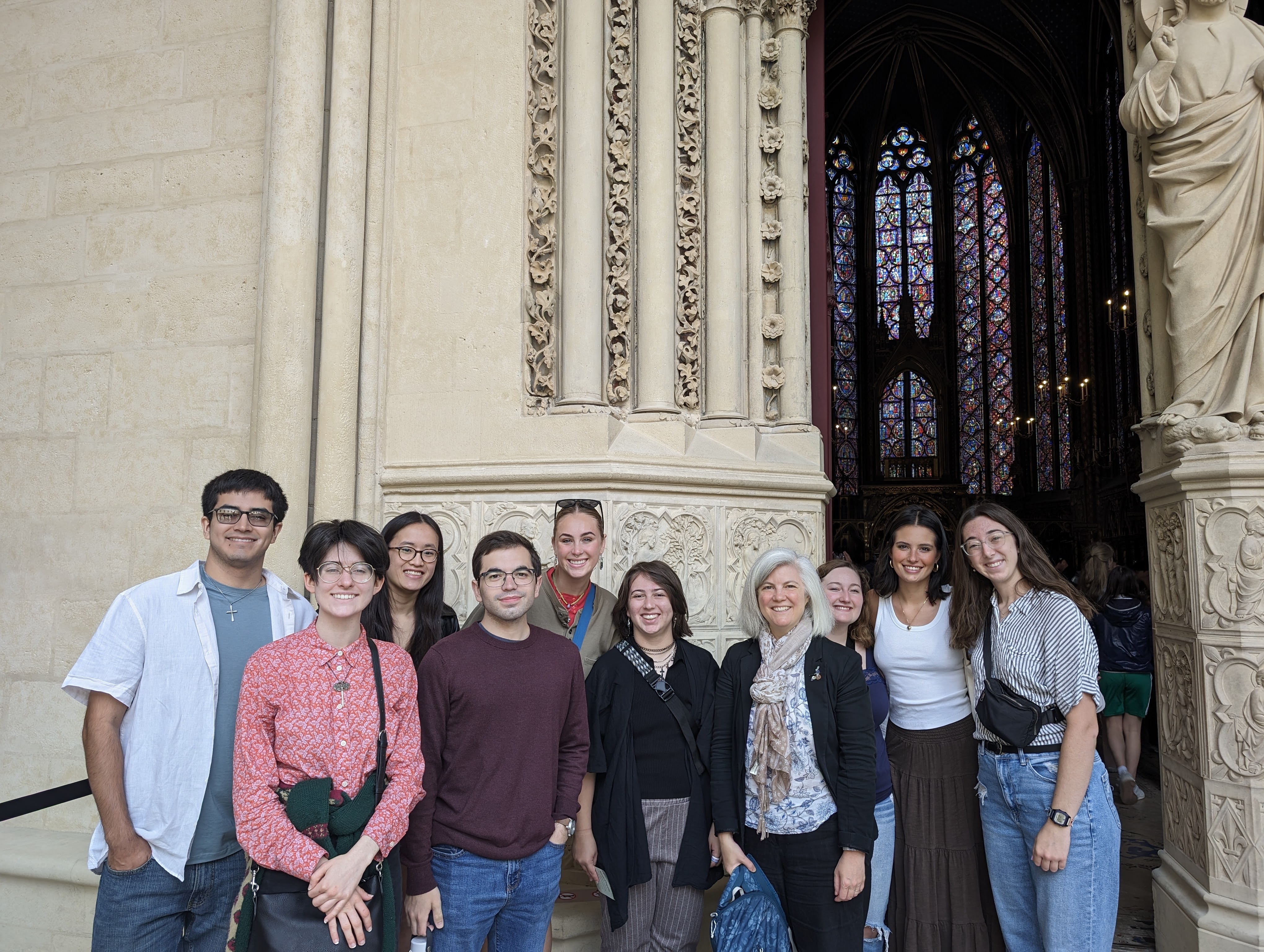 Group at Sainte Chappelle 2024 left to right: Miguel Velazquez, Bethany Sanders, Emma Sampson-Green, Lathan Smalley, Campbell Christensen, Andy Chaffin, Dr. Sasha Pfau, Samantha Vaccarella, Ayden Huckelbury, Betty Wolfe