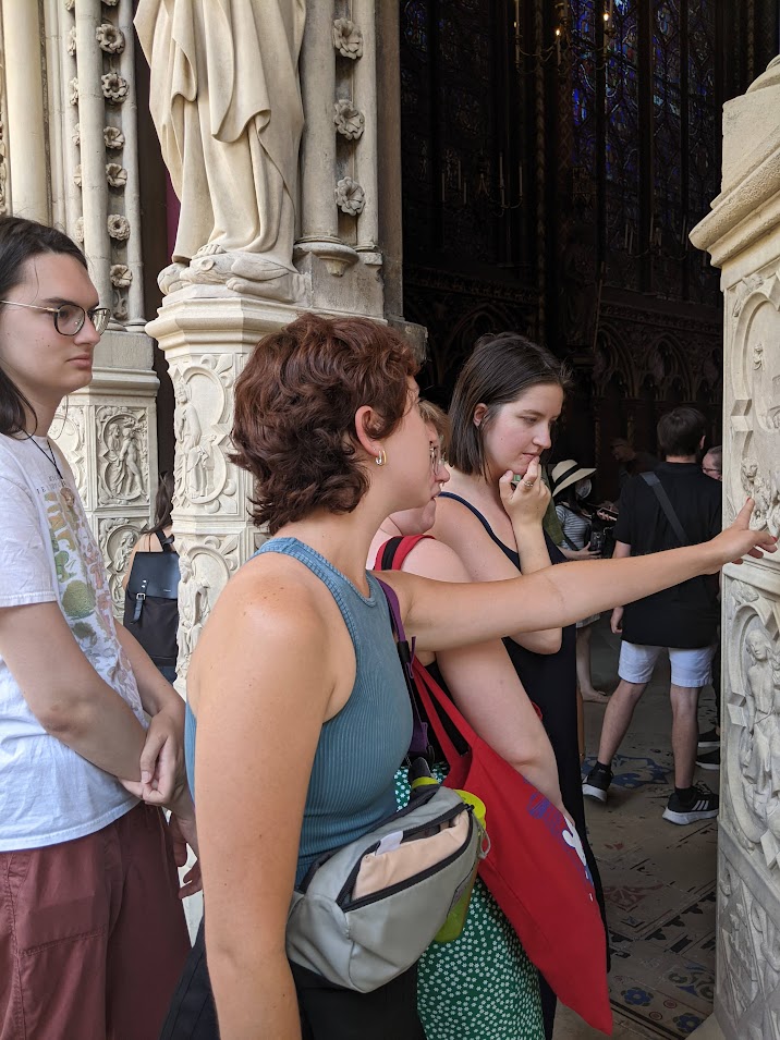 Historical Research Students selected a letter that to focus on for the project and worked together with Visual Artists. After a semester of background reading, the researchers and artists visited France, one group in Summer 2023 and one in Summer 2024. The trip allowed students to immerse themselves in the medieval world of their letters, through museums, architectural remains, and experiential archaeology. The Historical Researchers then developed their contextual essays with recommended bibliographies, intended to serve as guidance for other students who might want to study these sources. Working closely with their Researchers, the Visual Artists created artists’ renditions of spaces, objects, and scenes from the narratives.